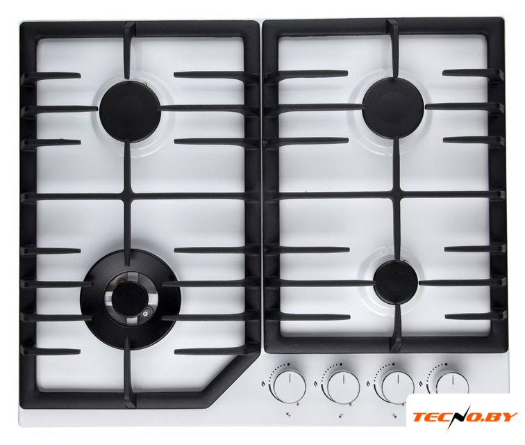 газовая на 4 конфорки, закаленное стекло, мощность: 8800 Вт, автоматический электроподжиг, газ-контроль, решетки: чугун, независимая установка, размеры (ШхГ): 61x51 см