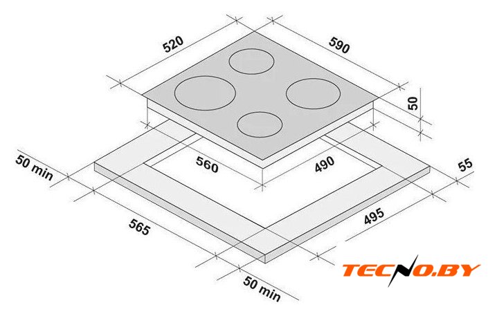 HiLight на 4 конфорки, cтеклокерамика, мощность: 6000 Вт, независимая установка, размеры (ШхГ): 59x52 см