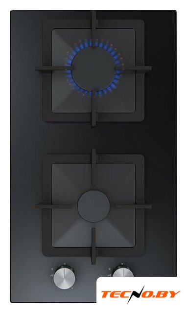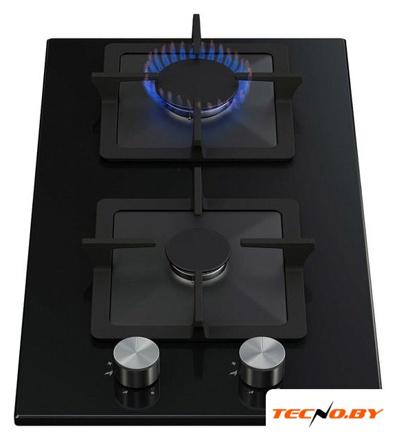 газовая на 2 конфорки, закаленное стекло, мощность: 4000 Вт, автоматический электроподжиг, газ-контроль, решетки: чугун, размеры (ШхГ): 30x52 см