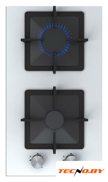 газовая на 2 конфорки, закаленное стекло, мощность: 4000 Вт, автоматический электроподжиг, газ-контроль, решетки: чугун, размеры (ШхГ): 30x52 см
