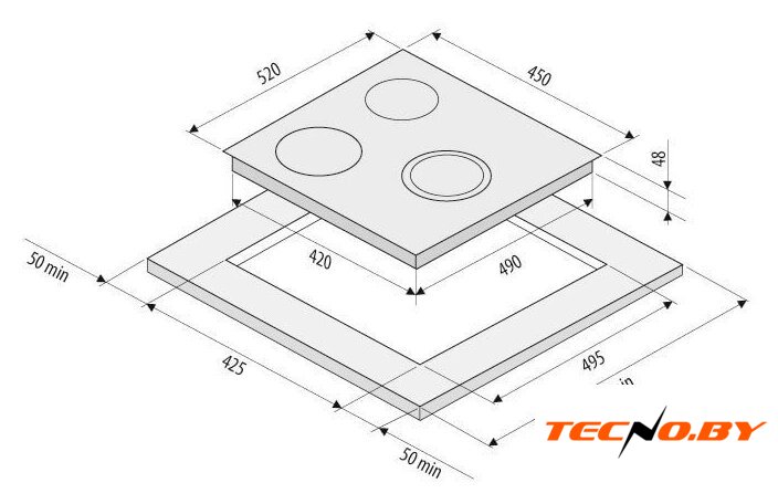 HiLight на 3 конфорки, cтеклокерамика, мощность: 4200 Вт, независимая установка, размеры (ШхГ): 45x52 см