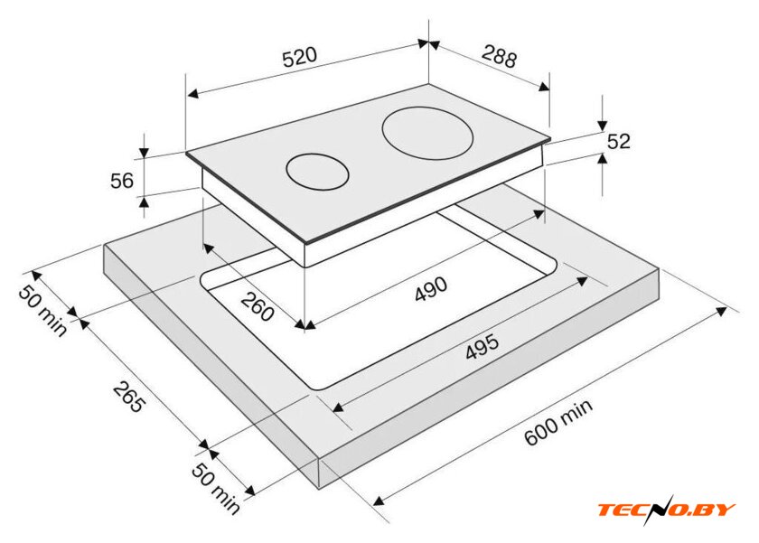 Благодаря небольшим размерам, данная варочная панель идеально подходит для малогабаритных кухонь или встраивания в ограниченное пространство. Требуемые размеры для встраивания: ширина 26 см и глубина 49 см, что делает установку быстрой и удобной.