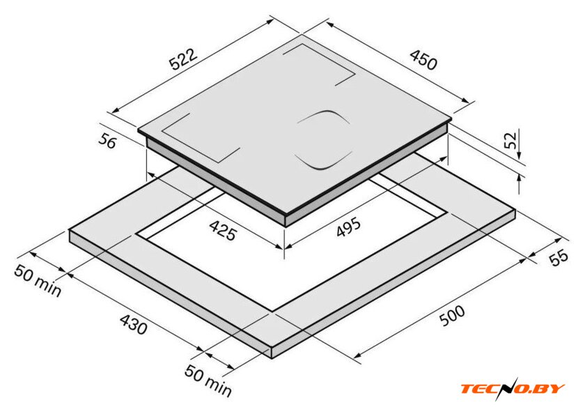индукционная на 4 конфорки, cтеклокерамика, мощность: 7100 Вт, независимая установка, размеры (ШхГ): 59x52 см