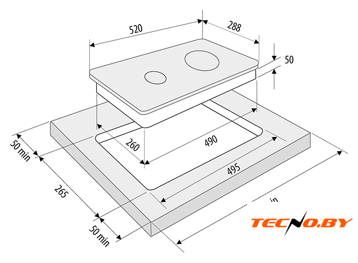 индукционная на 2 конфорки, cтеклокерамика, независимая установка, размеры (ШхГ): 29x52 см