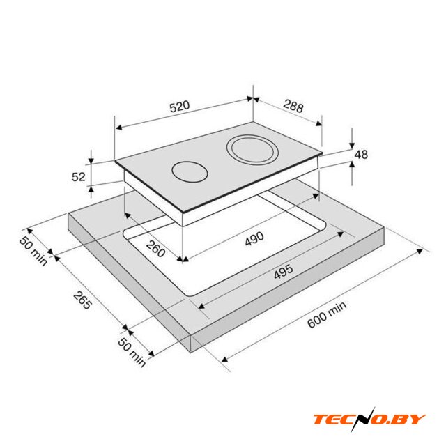 HiLight на 2 конфорки, cтеклокерамика, мощность: 3000 Вт, независимая установка, размеры (ШхГ): 28.8x52 см
