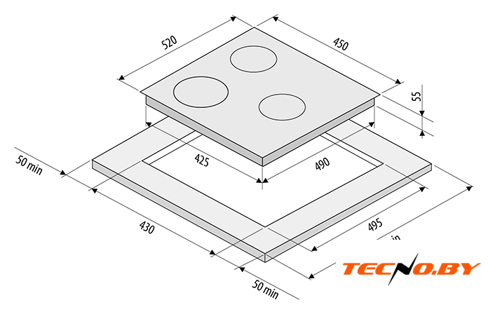 Подробная информация о конфорках | передняя левая: 210 мм, 2,3/2,6 кВтсредняя: 160 мм, 1,3/1,5 кВтзадняя левая: 160 мм, 1,3/1,5 кВт |