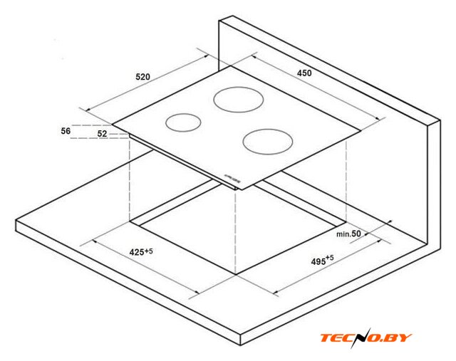 индукционная на 3 конфорки, cтеклокерамика, мощность: 6200 Вт, независимая установка, размеры (ШхГ): 45x52 см