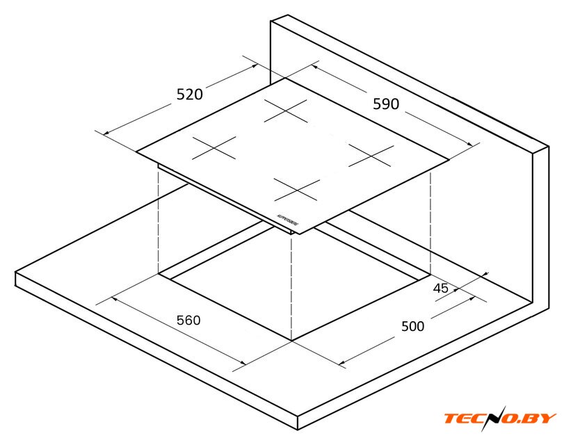 индукционная на 4 конфорки, cтеклокерамика, мощность: 7000 Вт, независимая установка, размеры (ШхГ): 59x52 см
