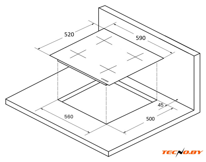 индукционная на 4 конфорки, cтеклокерамика, мощность: 7000 Вт, независимая установка, размеры (ШхГ): 58x51 см