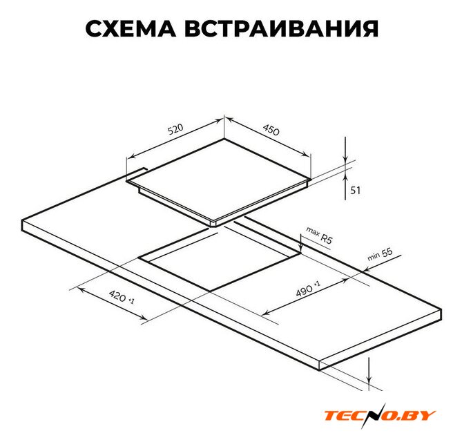Габариты варочной панели составляют 45 см в ширину и 52 см в глубину, что делает ее прекрасным выбором для небольших кухонь или кухонь-студий. Благодаря независимому типу установки и встраиваемым размерам ниши, всего 42 см в ширину и 49 см в глубину, вы сможете с легкостью инсталлировать ее в своей кухне.