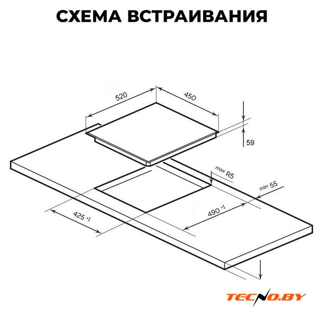индукционная на 4 конфорки, cтеклокерамика, независимая установка, размеры (ШхГ): 59x52 см