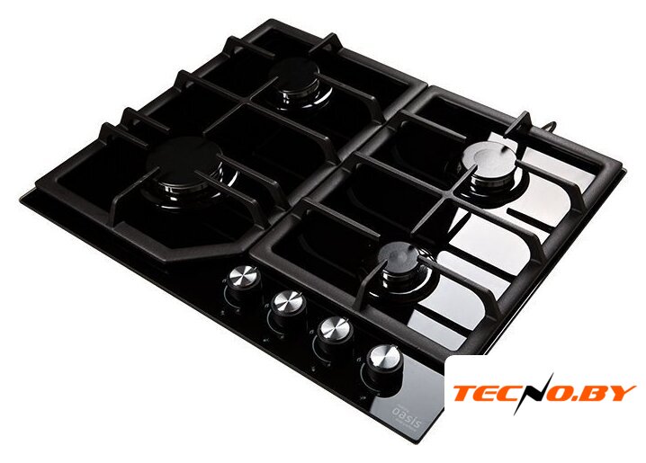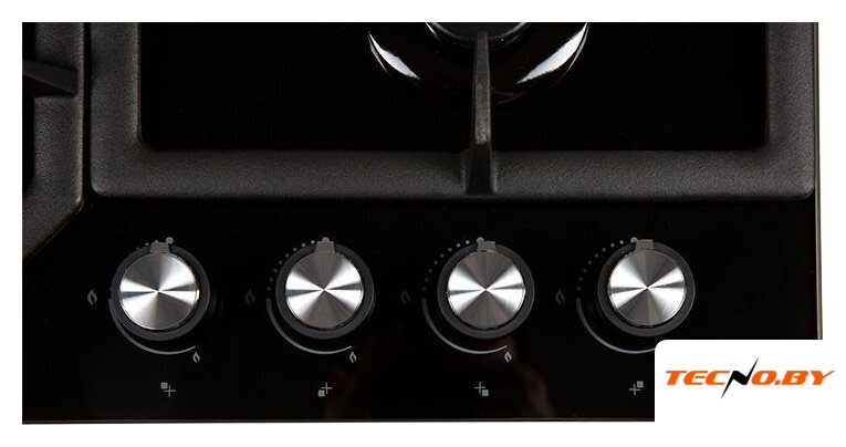 газовая на 4 конфорки, закаленное стекло, мощность: 7500 Вт, автоматический электроподжиг, газ-контроль, решетки: чугун, размеры (ШхГ): 60x51 см