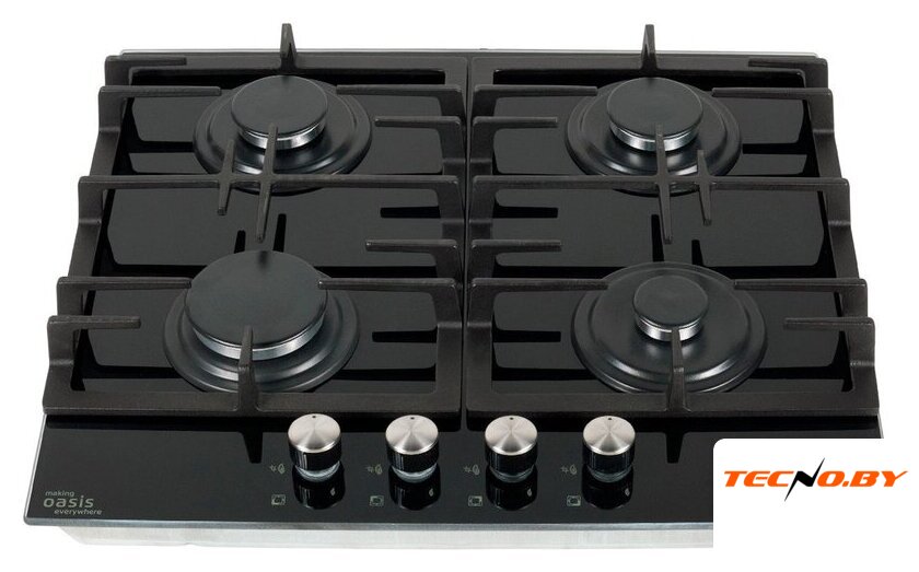газовая на 4 конфорки, закаленное стекло, мощность: 8300 Вт, автоматический электроподжиг, газ-контроль, решетки: эмалированная сталь, независимая установка, размеры (ШхГ): 60x50 см