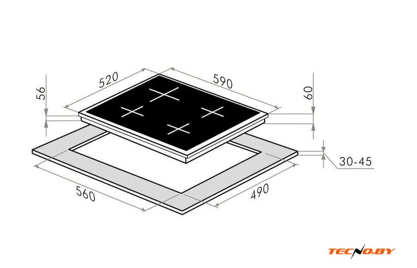 С шириной 59 см и глубиной 52 см, варочная панель легко вписывается в стандартные кухни, а её вес 7.5 кг облегчает установку и переноску. Размеры ниши для встраивания: ширина 56 см и глубина 49 см. Это делает панель идеально подходящей для замены старых устройств или при планировании новой кухни.