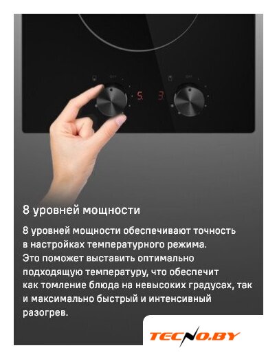 MAUNFELD CVCE292MBK2 оснащена двумя конфорками быстрого нагрева (HiLight) общей мощностью 3 000 Вт. Одна конфорка мощностью 1800 Вт, другая - 1200 Вт. Вы можете выбрать из 9 уровней мощности, чтобы достичь идеальной температуры для различных блюд. HiLight технологии обеспечивают быстрое нагревание, экономя ваше время и обеспечивая точный контроль температуры.