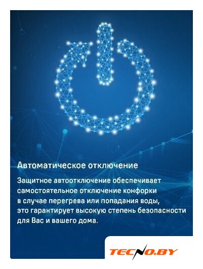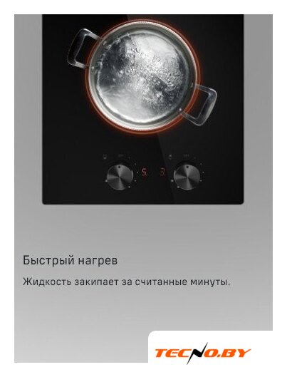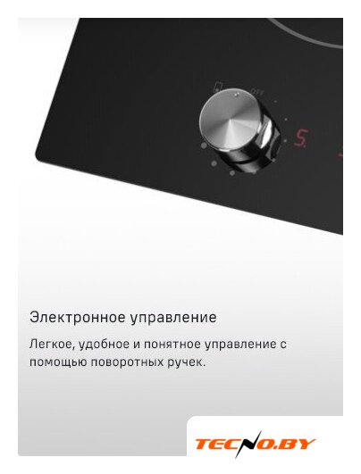 Механическое управление расположено спереди, что делает доступ к нему быстрым и простым. Хотя панель лишена автоматических программ и таймера, она снабжена индикатором остаточного тепла, который предупредит вас о том, что поверхность еще горячая. Элементы управления интуитивно понятны, что исключает необходимость изучения сложных инструкций.