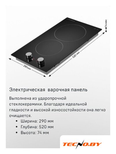 HiLight на 2 конфорки, cтеклокерамика, мощность: 3000 Вт, независимая установка, размеры (ШхГ): 29x52 см