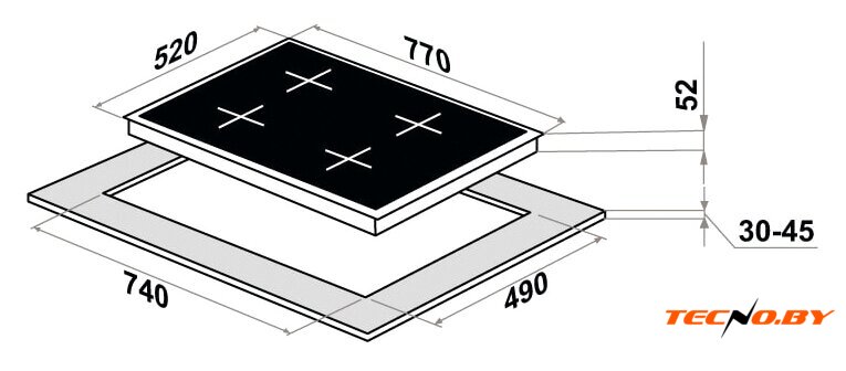 Благодаря независимой установке, варочная панель легко встраивается в различные типы кухонных шкафов. Габариты для встроенной ниши составляют 74 см в ширину и 49 см в глубину, что делает установку быстрой и удобной. С шириной самой панели в 77 см и весом 8,2 кг, она предоставит возможность оптимально организовать пространство на кухонной столешнице.