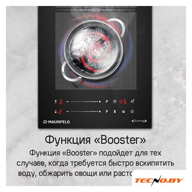 | Подробная информация о конфорках | 1х1500 (бустер 2000 Вт)1х2000 (бустер 2800 Вт) |