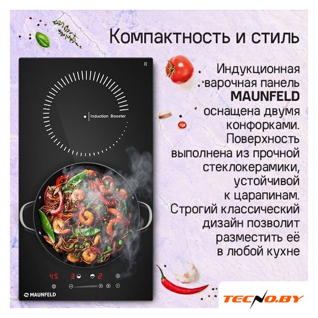 индукционная на 2 конфорки, cтеклокерамика, мощность: 3600 Вт, независимая установка, размеры (ШхГ): 29x52 см