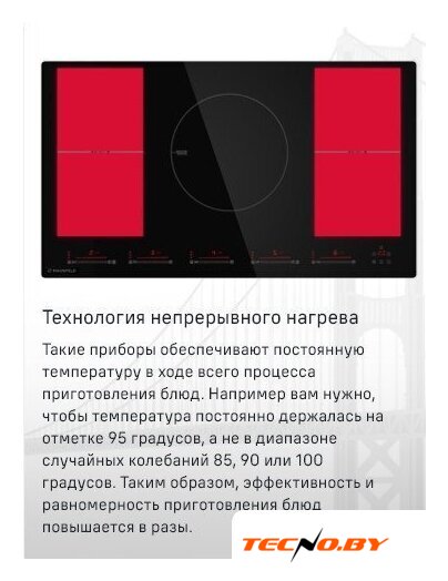 индукционная на 4 конфорки, cтеклокерамика, мощность: 7350 Вт, автоматика закипания, независимая установка, размеры (ШхГ): 77x51 см