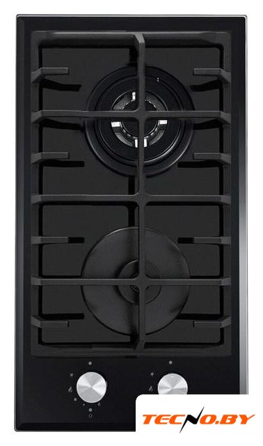 газовая на 2 конфорки, закаленное стекло, мощность: 4300 Вт, автоматический электроподжиг, газ-контроль, решетки: чугун, независимая установка