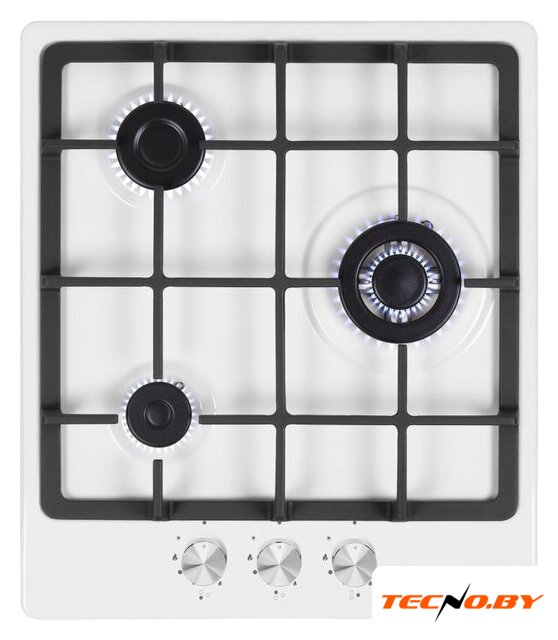 газовая на 3 конфорки, закаленное стекло, мощность: 5950 Вт, автоматический электроподжиг, газ-контроль, решетки: чугун, независимая установка, размеры (ШхГ): 45x52.5 см