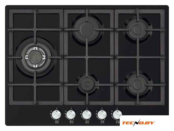 Панель оснащена пятью газовыми конфорками разной мощности: 3800 Вт, 2600 Вт, два по 1700 Вт и одной 1000 Вт. Также имеется конфорка WOK для любителей необычных блюд. Общая мощность устройства составляет 10 800 Вт, что обеспечивает быструю готовку самых разных блюд. Чугунные решетки придают дополнительную устойчивость посуде и гарантируют долгий срок службы.