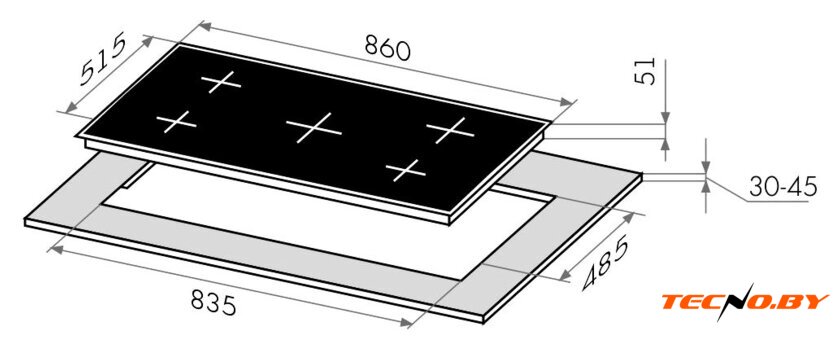 С шириной в 86 см и глубиной 51.5 см, эта варочная панель идеально подходит для большинства современных кухонных пространств. Размеры ниши для встраивания составляют ширину 83.5 см и глубину 48.5 см, что делает процесс интеграции в кухонную мебель максимально простым и удобным.