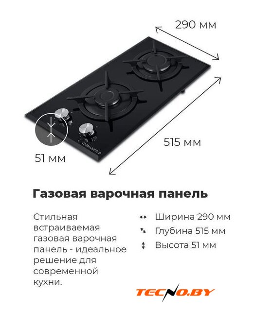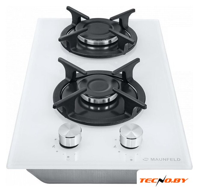 газовая на 2 конфорки, закаленное стекло, мощность: 4300 Вт, автоматический электроподжиг, газ-контроль, решетки: чугун, независимая установка