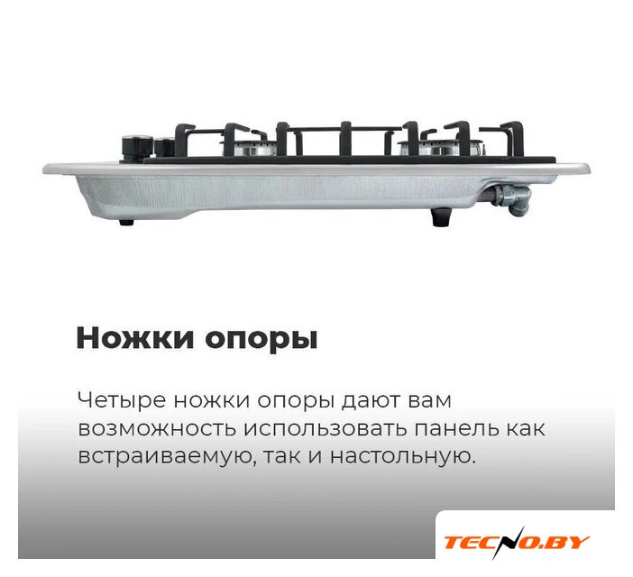 Панель оснащена двумя газовыми конфорками: мощностью 2600 Вт и 1700 Вт. Это делает ее отличным выбором для готовки как простых блюд, так и создания кулинарных шедевров. Чугунные решетки придают устойчивость посуде разных размеров — от 60 до 240 мм. Кроме того, функция газ-контроль обеспечивает дополнительную безопасность, предотвращая утечки газа в случае затухания пламени.