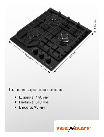 Размеры варочной панели составляют всего 44 см в ширину и 51 см в глубину, что позволяет разместить её в компактных кухнях. Для встраивания потребуется ниша шириной 41.5 см и глубиной 48.5 см. С весом всего 10.36 кг, панель легко монтируется и транспортируется. Ее универсальные размеры делают MAUNFELD EGHG.43.73CW/G удобной для любой кухни, где пространство имеет значение.