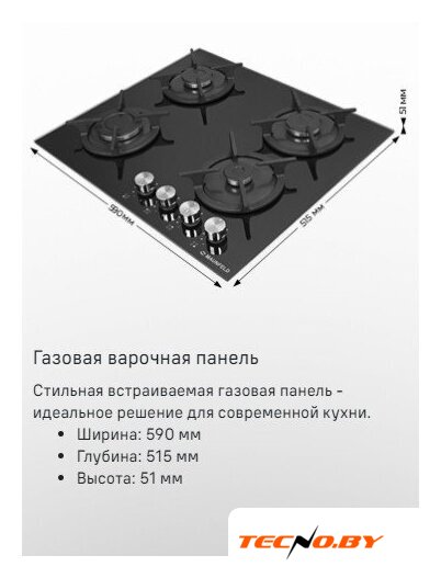 MAUNFELD EGHG.64.1CB/G имеет ширину 60 см, что делает возможным ее установку в стандартные ниши шириной 56 см и глубиной 48,5 см. Это значит, что панель будет легко вписываться в вашу кухню, не требуя сложных дополнительных модификаций.