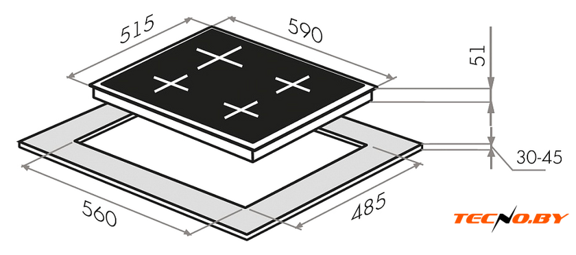Компактные габариты панели, 59 см в ширину и 51.5 см в глубину, позволяют ей легко встраиваться в кухонные гарнитуры. Для установки требуется ниша с размерами 56 см ширина и 48.5 см глубина, что делает MAUNFELD EGHG.64.2CBG/G подходящим вариантом для большинства стандартных кухонь. Вес модели составляет всего 10 кг, что упрощает процесс ее установки.