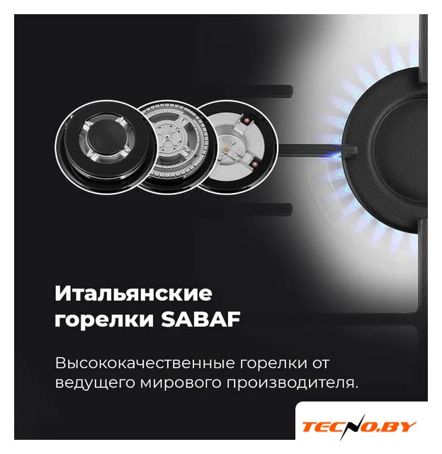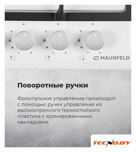 Механическое управление варочной панелью расположено спереди, что делает его доступным и удобным в использовании. Автоматический электроподжиг значительно упрощает процесс включения, а газ-контроль обеспечивает безопасность, отключая подачу газа при затухании пламени. Чтобы сделать процесс использования максимально комфортным, панель была спроектирована без навязчивых индикаторов и лишних элементов управления.