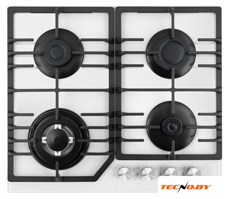 газовая на 4 конфорки, закаленное стекло, мощность: 9100 Вт, автоматический электроподжиг, газ-контроль, решетки: чугун, независимая установка, размеры (ШхГ): 59x51.5 см