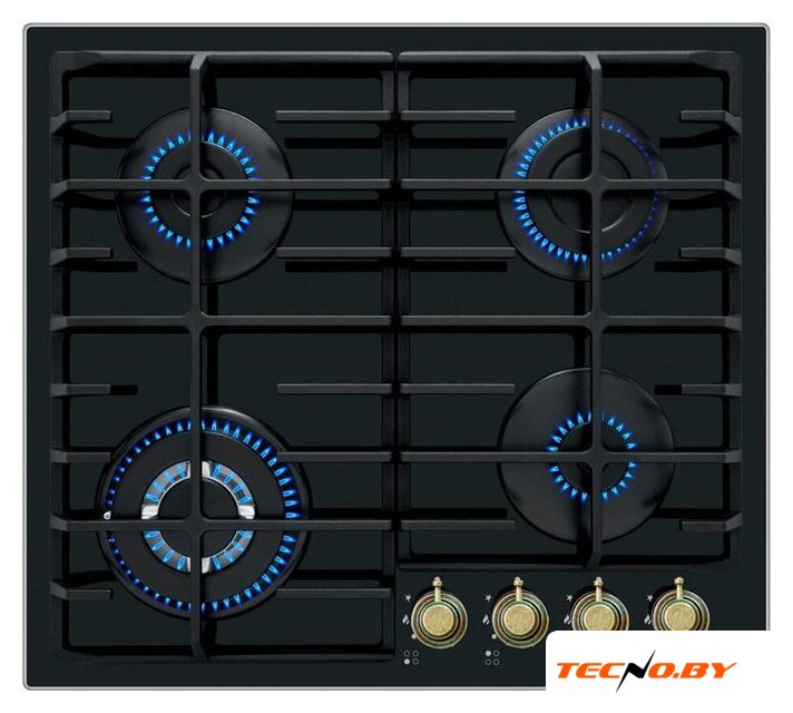 газовая на 4 конфорки, закаленное стекло, мощность: 9100 Вт, автоматический электроподжиг, газ-контроль, решетки: чугун, независимая установка, размеры (ШхГ): 59x51.5 см