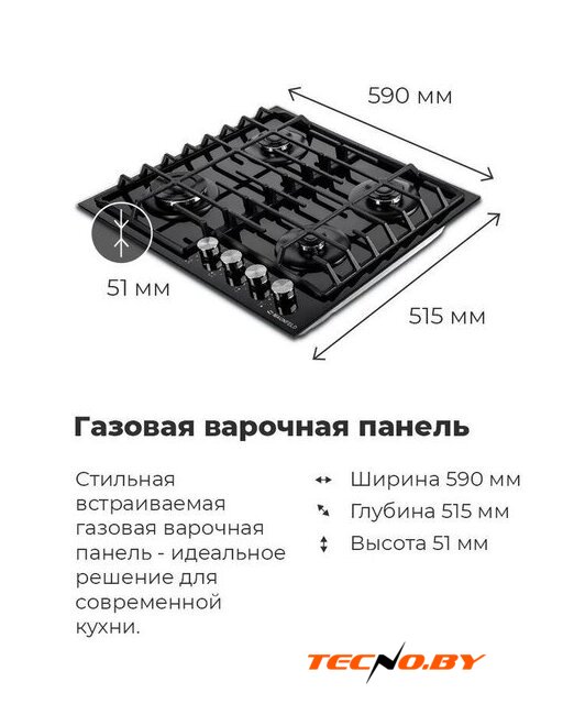 Компактные размеры панели (59 см ширина и 51.5 см глубина) позволяют удобно встраивать ее в кухонную мебель. Размеры ниши для установки составляют 56 см в ширину и 48.5 см в глубину, что делает процесс встраивания простым и непринужденным. MAUNFELD EGHG.64.6CB/G — это ваш надежный помощник на кухне, который объединяет в себе стиль, функциональность и безопасность.
