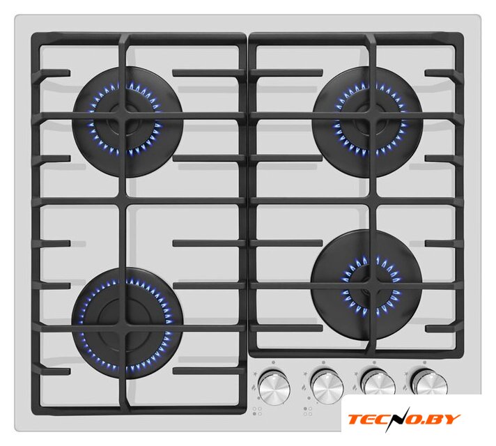 газовая на 4 конфорки, нержавеющая сталь, мощность: 10300 Вт, автоматический электроподжиг, газ-контроль, решетки: чугун, размеры (ШхГ): 60x51 см