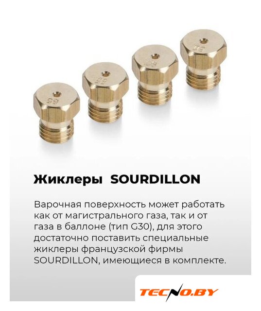 Для обеспечения безопасности предусмотрен газ-контроль, который автоматически перекрывает подачу газа в случае его утечки. Это дает дополнительную уверенность в безопасной эксплуатации устройства в течение долгих лет. Автоматический электроподжиг позволяет без проблем зажигать конфорки с первого раза, что экономит ваше время и силы.
