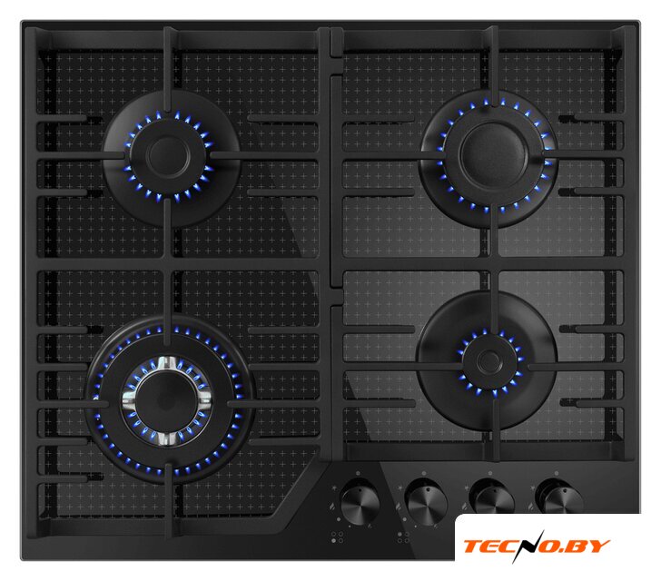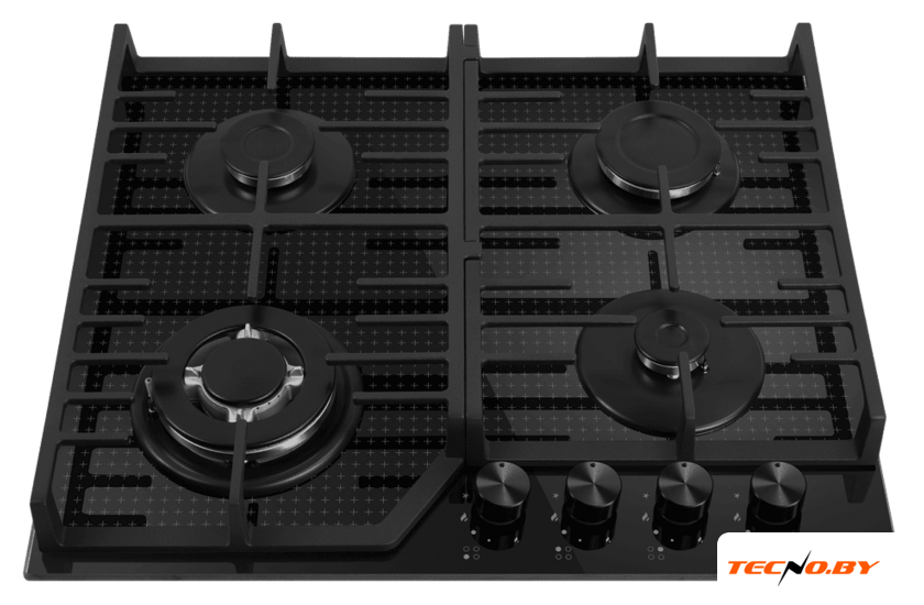 газовая на 4 конфорки, закаленное стекло, мощность: 9100 Вт, автоматический электроподжиг, газ-контроль, решетки: чугун, независимая установка, размеры (ШхГ): 59x51.5 см