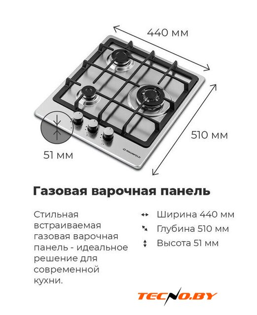 Варочная панель MAUNFELD EGHS.43.33CS/G – это отличное сочетание современного дизайна и прочной конструкции. Выполненная из нержавеющей стали, она выглядит стильно и элегантно, отлично вписываясь в любую кухню. Отсутствие рамки придаёт варочной поверхности минималистичный и утончённый вид, подчёркивая её функциональную элегантность.