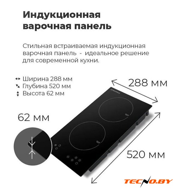 С шириной всего лишь 28.8 см и глубиной 52 см, эта варочная панель компактна и идеально подходит для небольших кухонь. Независимая установка позволяет встраивать ее в ниши шириной 26.8 см и глубиной 50 см, создавая гармоничное пространство без лишних элементов. Вес всего 4.3 кг делает монтаж легким и быстрым.