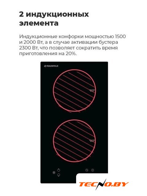 Оснащённая двумя индукционными конфорками, MAUNFELD EVI.292-WH предлагает высокоэффективное приготовление пищи с максимальной общей мощностью в 3800 Вт. Благодаря девяти уровням мощности, вы можете легко адаптировать нагрев к любому блюду, сохраняя энергию и время. 🙌 Функция Booster позволяет моментально увеличить мощность, чтобы ускорить процесс приготовления.