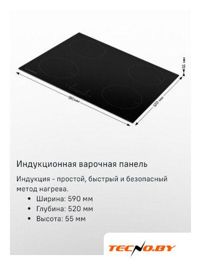 индукционная на 4 конфорки, cтеклокерамика, независимая установка, размеры (ШхГ): 59x52 см