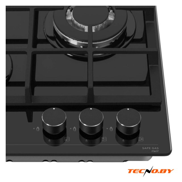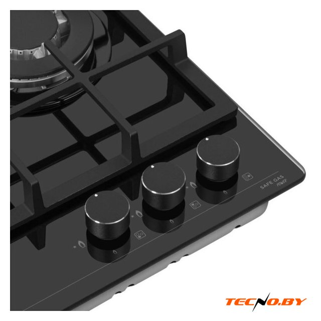 газовая на 4 конфорки, закаленное стекло, мощность: 8650 Вт, автоматический электроподжиг, газ-контроль, решетки: чугун