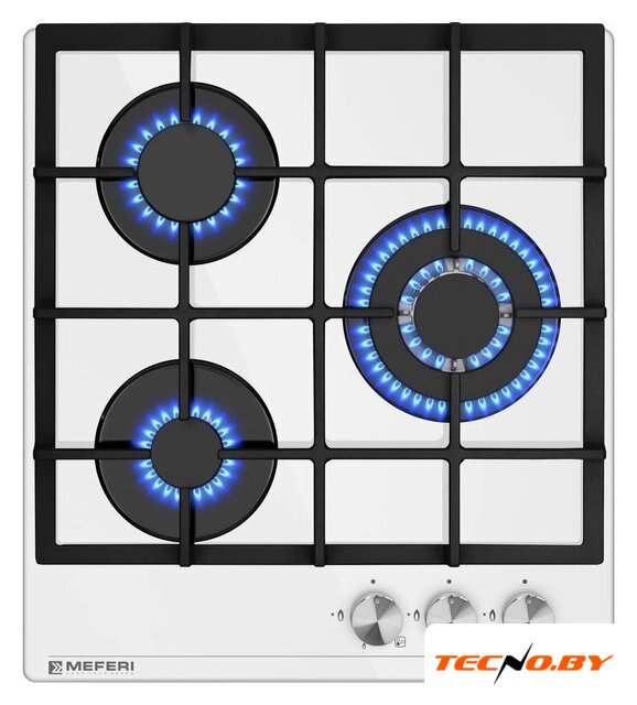 газовая на 3 конфорки, закаленное стекло, мощность: 6200 Вт, автоматический электроподжиг, газ-контроль, решетки: чугун, независимая установка, размеры (ШхГ): 45x51 см