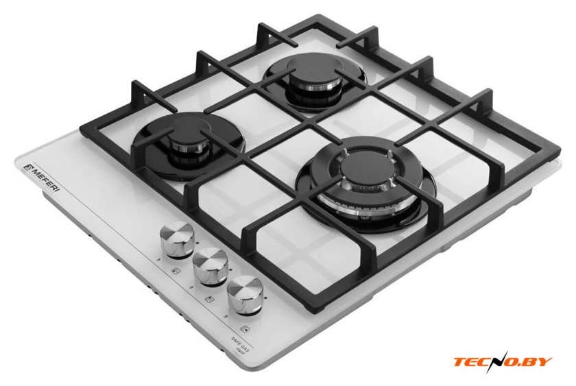 газовая на 3 конфорки, закаленное стекло, мощность: 6400 Вт, автоматический электроподжиг, газ-контроль, решетки: чугун, независимая установка, размеры (ШхГ): 45x52 см