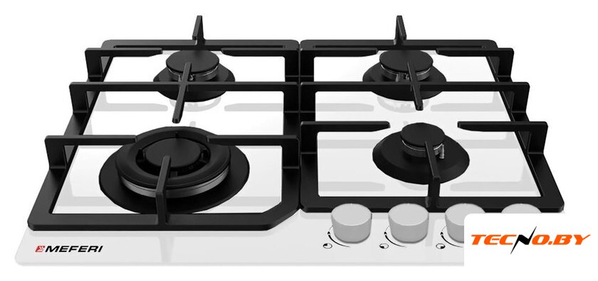 газовая на 4 конфорки, закаленное стекло, мощность: 8000 Вт, автоматический электроподжиг, газ-контроль, решетки: чугун, размеры (ШхГ): 61x52.5 см