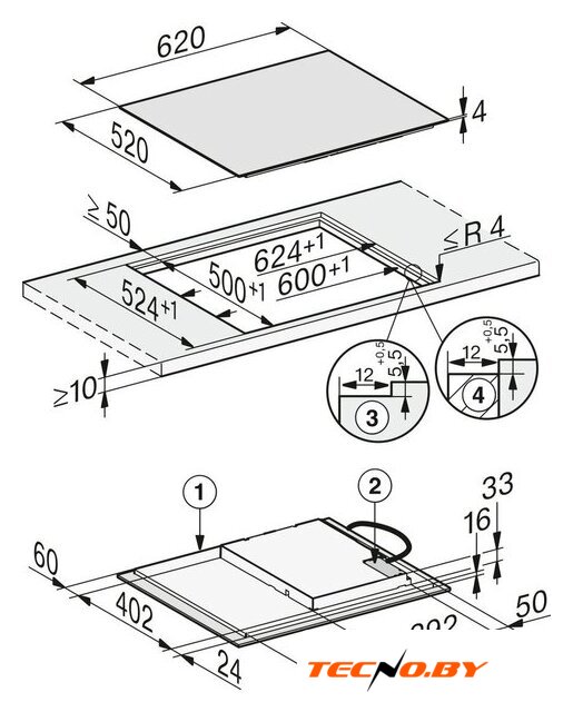 индукционная на 4 конфорки, cтеклокерамика, мощность: 7400 Вт, независимая установка, размеры (ШхГ): 81.2x52 см